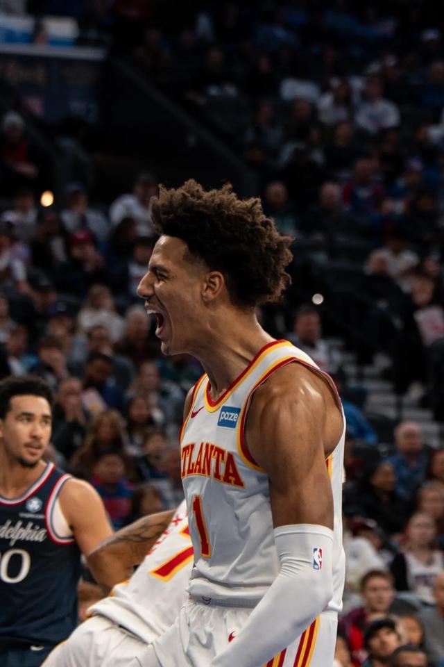 特雷-杨对于杰伦的评价,就是他这段时间带队的缩影:“很明显的是,在这个征程里,他一直在扛着我们前进,打出了疯狂的数据并且打得超级高效。”